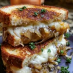 A delicious grilled cheese sandwich infused with the rich flavors of caramelized onions and melted cheese, perfect for a comforting meal.