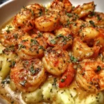 A creamy and flavorful dish featuring succulent shrimp and buttery mashed potatoes, enhanced with garlic and Parmesan.