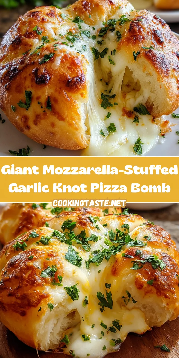Creating a Giant Mozzarella-Stuffed Garlic Knot Pizza Bomb is more than just a cooking experience; it’s a joyful culinary journey that brings the family together. The moment you pull apart those cheesy, garlicky knots, and see the gooey mozzarella stretch, it’s pure bliss!
