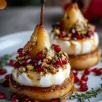 Golden Caramelized Pear & Burrata Towers is a delightful dessert featuring tender poached pears layered with creamy burrata and sweet mascarpone, drizzled with a rich caramel glaze.