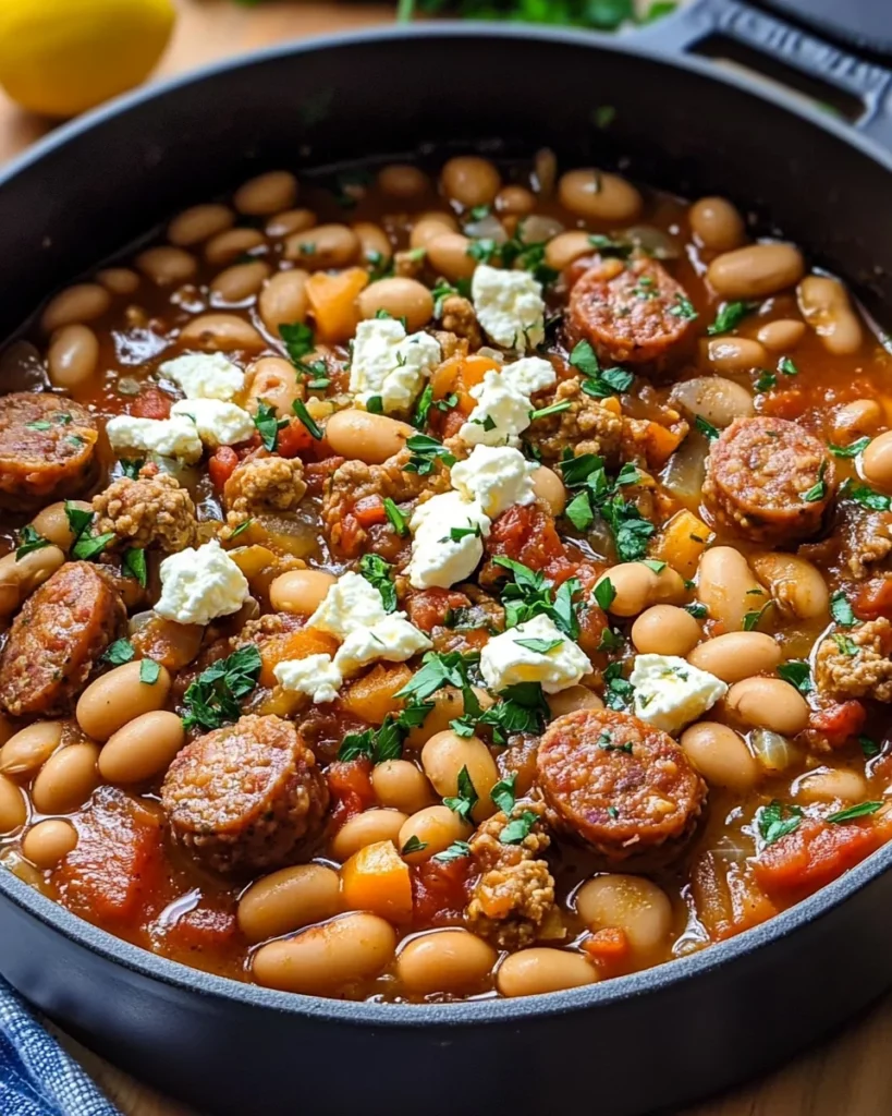 This dish sings with vibrant flavors, yet comes together without much fuss. Perfect for busy nights, you’ll love how quickly it cooks, giving you time to unwind. Plus, it’s a one-pan wonder, meaning less cleanup for you! With the cozy comfort of Greek sausage mingling with tender beans, it’s a crowd-pleaser that leaves bellies happy and hearts fuller. Trust me, it’s a hug in a bowl!