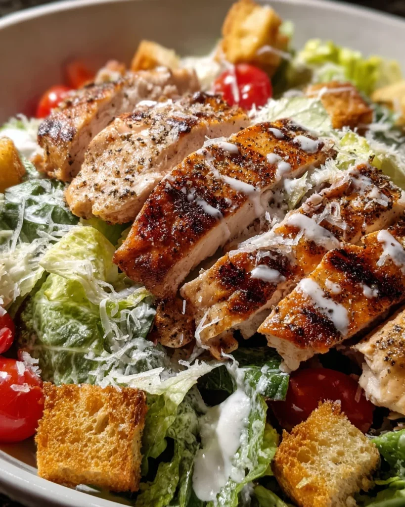 A delicious twist on the classic Caesar salad featuring grilled chicken and a homemade Caesar dressing.