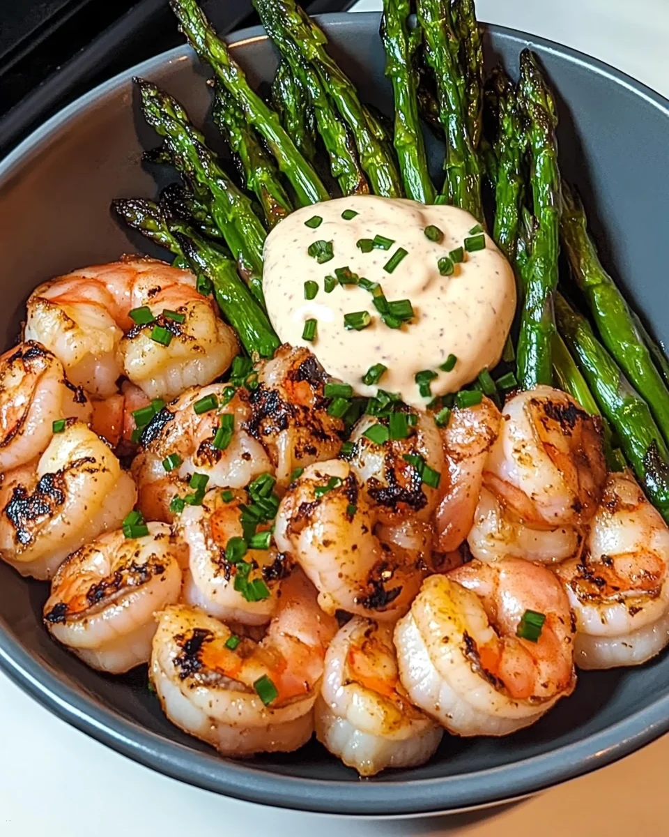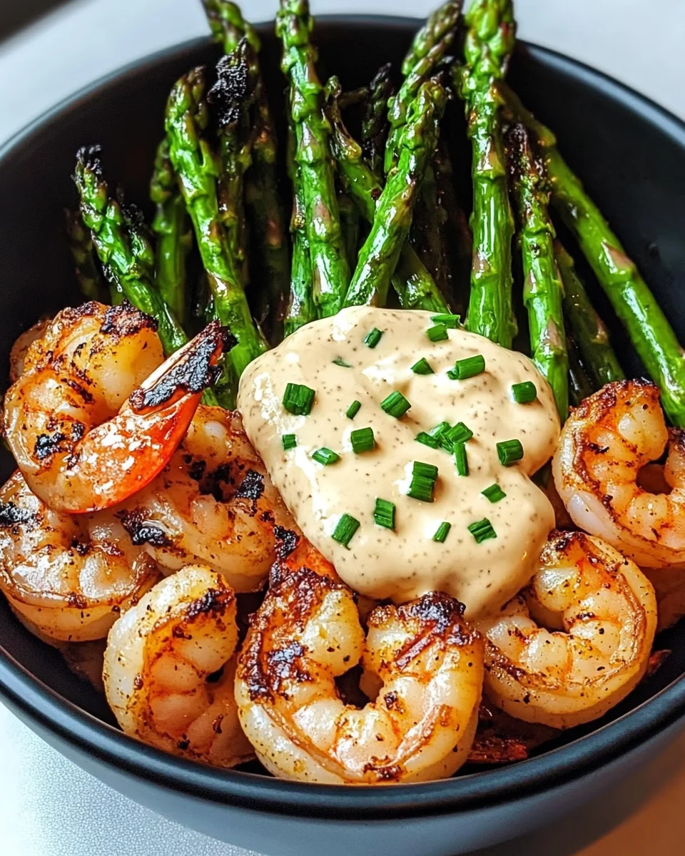 And there you have it—a stunning Grilled Shrimp Bowl with Asparagus & Creamy Garlic Sauce that’s sure to impress. Enjoy every last bite!