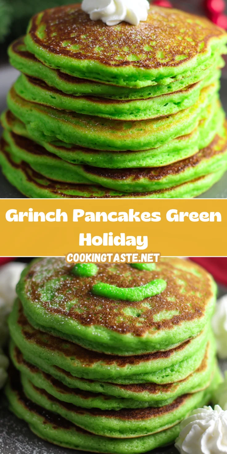 Delicious and festive pancakes that bring the Grinch to your holiday breakfast table with their vibrant green color.