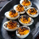 A spooky twist on the classic deviled eggs, perfect for Halloween celebrations.
