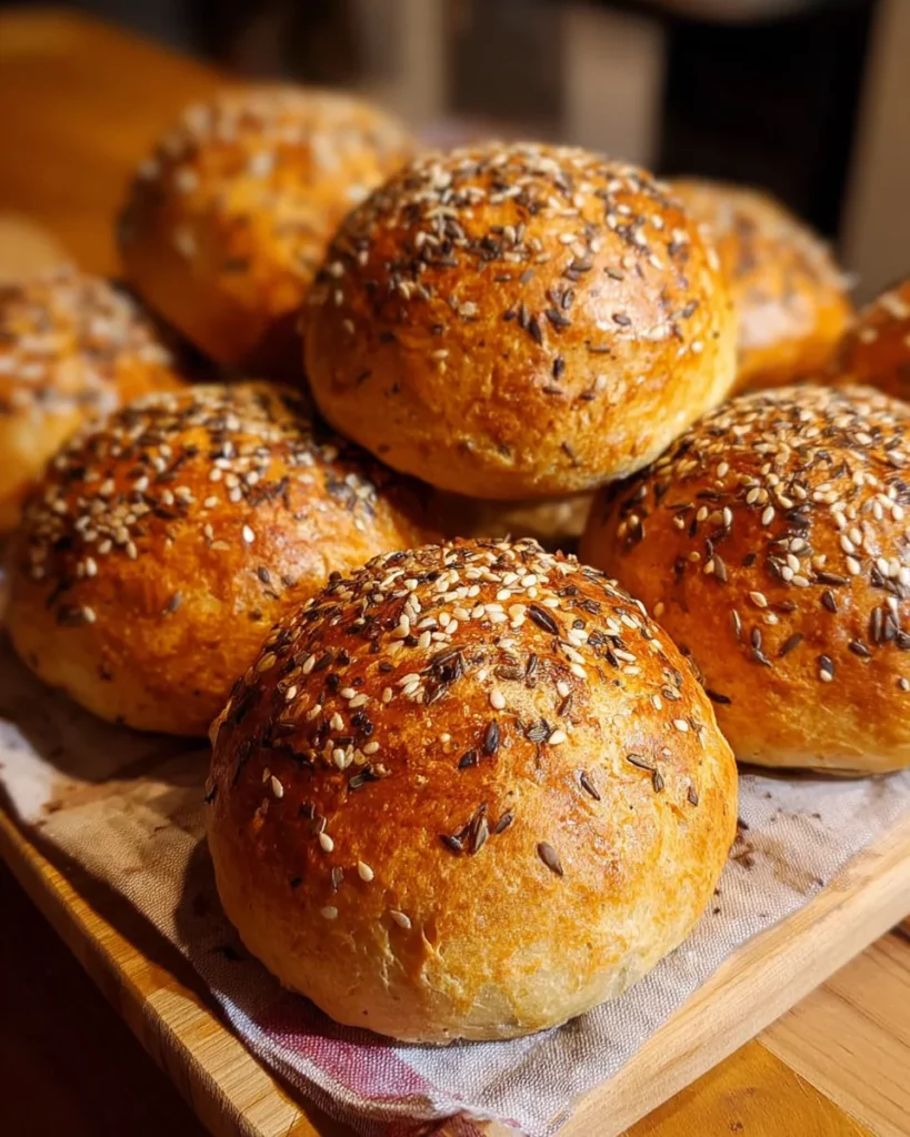 Delicious and fluffy homemade seeded bread rolls, perfect for any meal.