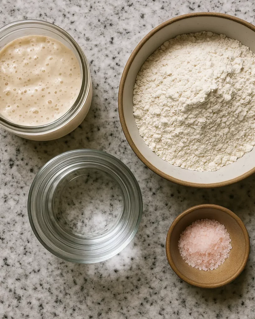- 325g warm water (90°F) – The warm temperature helps wake up the starter and kick-start fermentation.