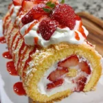 - Sponge Cake: The base of this roll, made with large eggs for fluffiness, granulated sugar for sweetness, and vanilla extract for flavor. All-purpose flour creates that perfect structure while baking powder helps it rise. A touch of milk makes it tender, while finely chopped strawberries add a burst of fresh fruitiness.