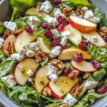 In a large bowl, arrange the mixed greens as your base. Then, layer on the thinly sliced Honeycrisp apples. Next, sprinkle the crumbled feta cheese, toasted nuts, and dried cranberries or pomegranate seeds. If you’re using red onion, add it here! Every layer enhances both the taste and visual appeal.