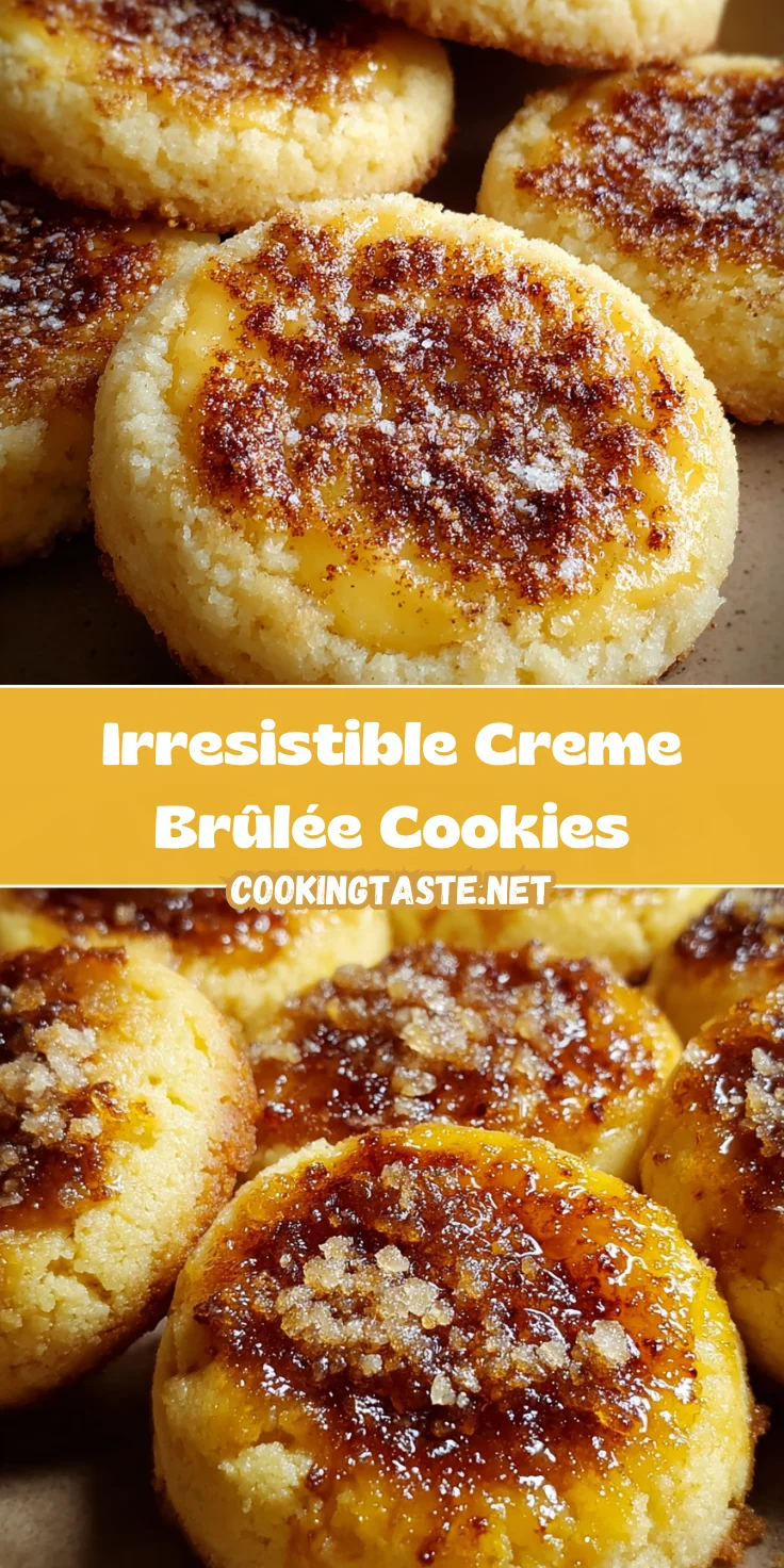 Creating these Irresistible Creme Brûlée Cookies is not just about baking; it’s about embracing joyful moments in the kitchen. Each cookie brings a delightful blend of flavors, making them perfect for festive gatherings or cozy nights in. There’s something soul-soothing about that creamy topping contrasted with the cookie’s warm, soft center. When you share these cookies with family or friends, the smiles and satisfaction will be priceless. I hope you find as much joy in making these cookies as I do. Happy baking, and may your kitchen always be filled with laughter and delicious aromas!