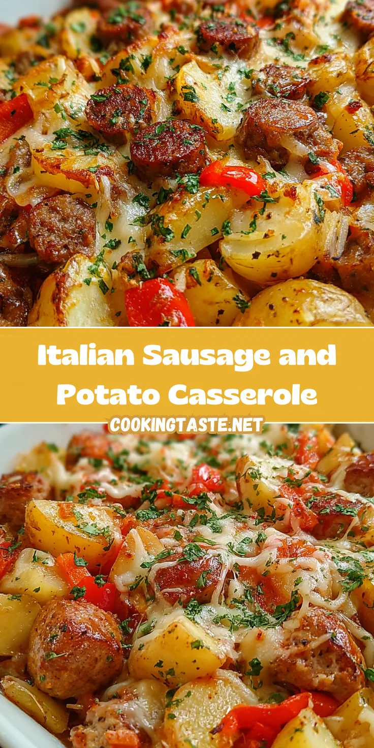 A hearty Italian sausage and potato casserole that combines savory flavors with cheesy goodness.