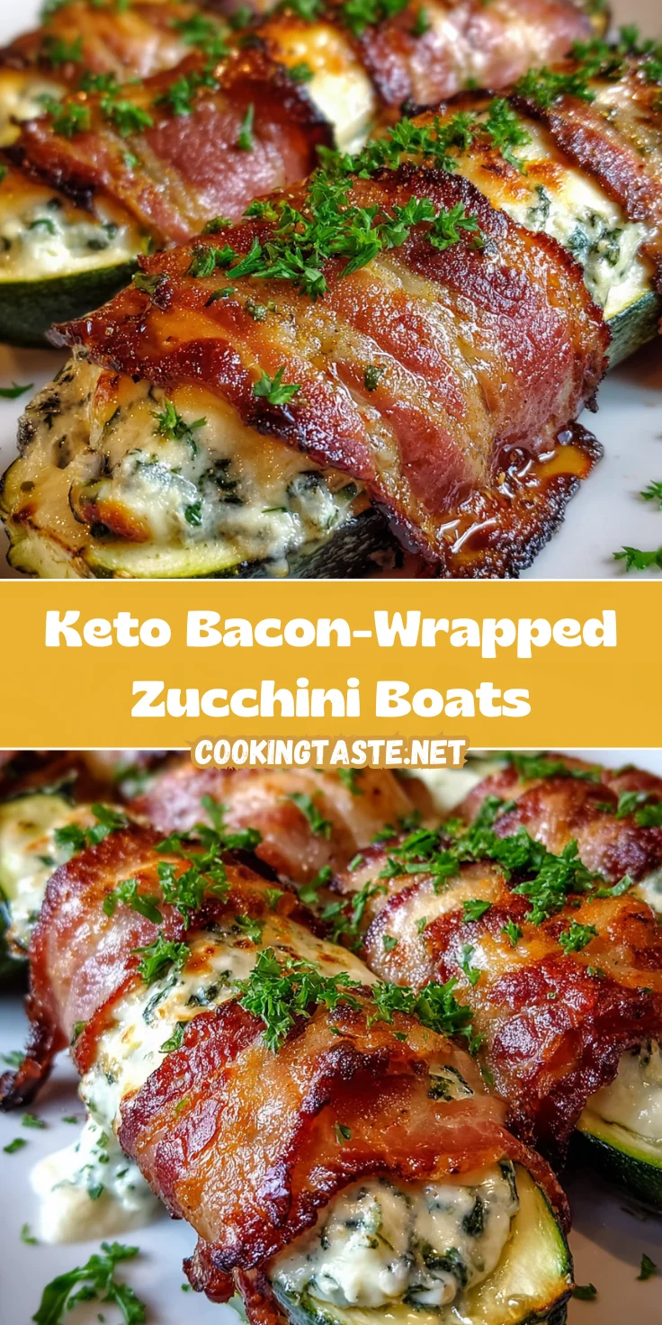 Keto Bacon-Wrapped Zucchini Boats are a delicious low-carb dish, combining crispy bacon with creamy cheese-filled zucchini for a satisfying and healthy meal.