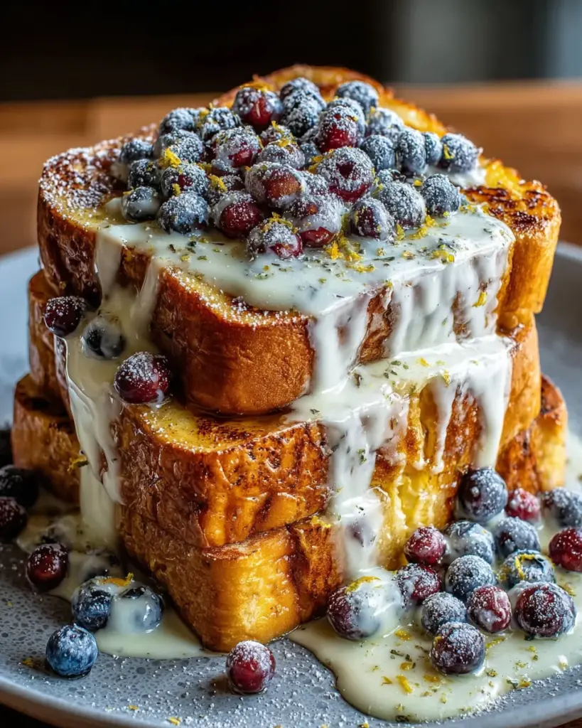 Deliciously sweet and tangy Lemon Blueberry Sourdough Toast that makes for an irresistible breakfast treat.