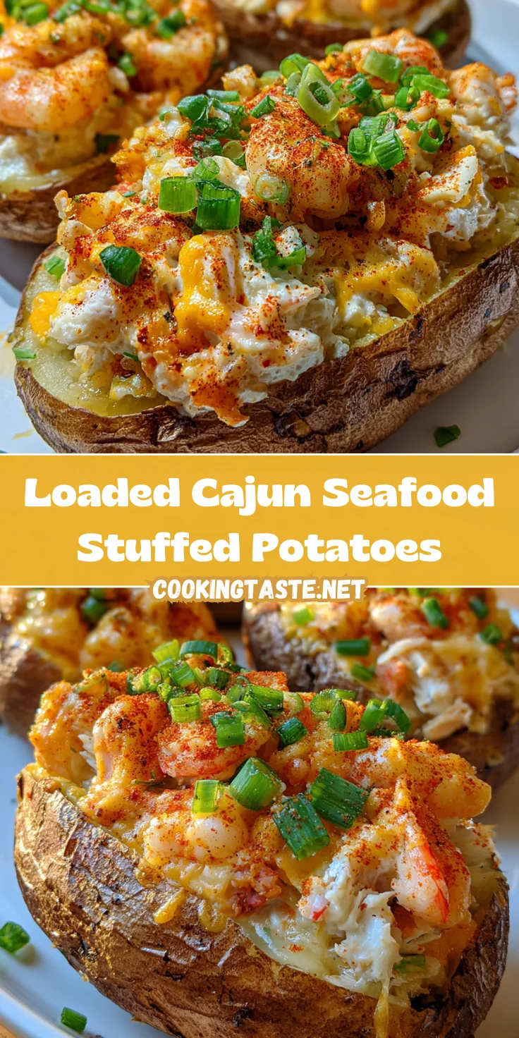 Loaded Cajun Seafood Stuffed Potatoes are a flavorful delight, combining tender potatoes with a rich seafood mixture, creamy ingredients, and topped with melted cheese.