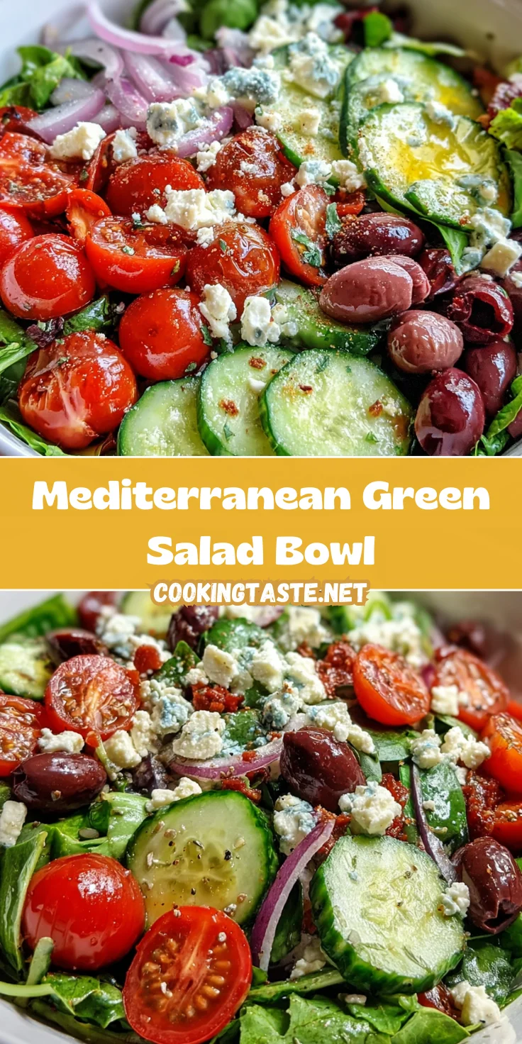 For extra zing, try adding a splash of lemon juice or some fresh herbs like dill or parsley. The Mediterranean Green Salad Bowl is versatile, and experimenting with the dressing can yield delicious results!