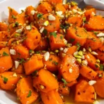 Finally, transfer your salad onto a lovely serving platter. Don’t forget to sprinkle those crunchy pistachios (or slivered almonds) on top for added texture. A little sprinkle of extra parsley is a nice touch too. Your Moroccan Carrot Salad is now ready to impress everyone at the table!