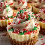Just before serving, top your mini cheesecakes with those festive red and green sprinkles. If you’re feeling extra fancy, sprinkle some crushed candy canes on top for a delightful crunch and flavor boost.