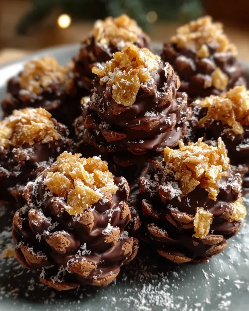 Delicious no-bake truffles shaped like pinecones, perfect for entertaining guests.