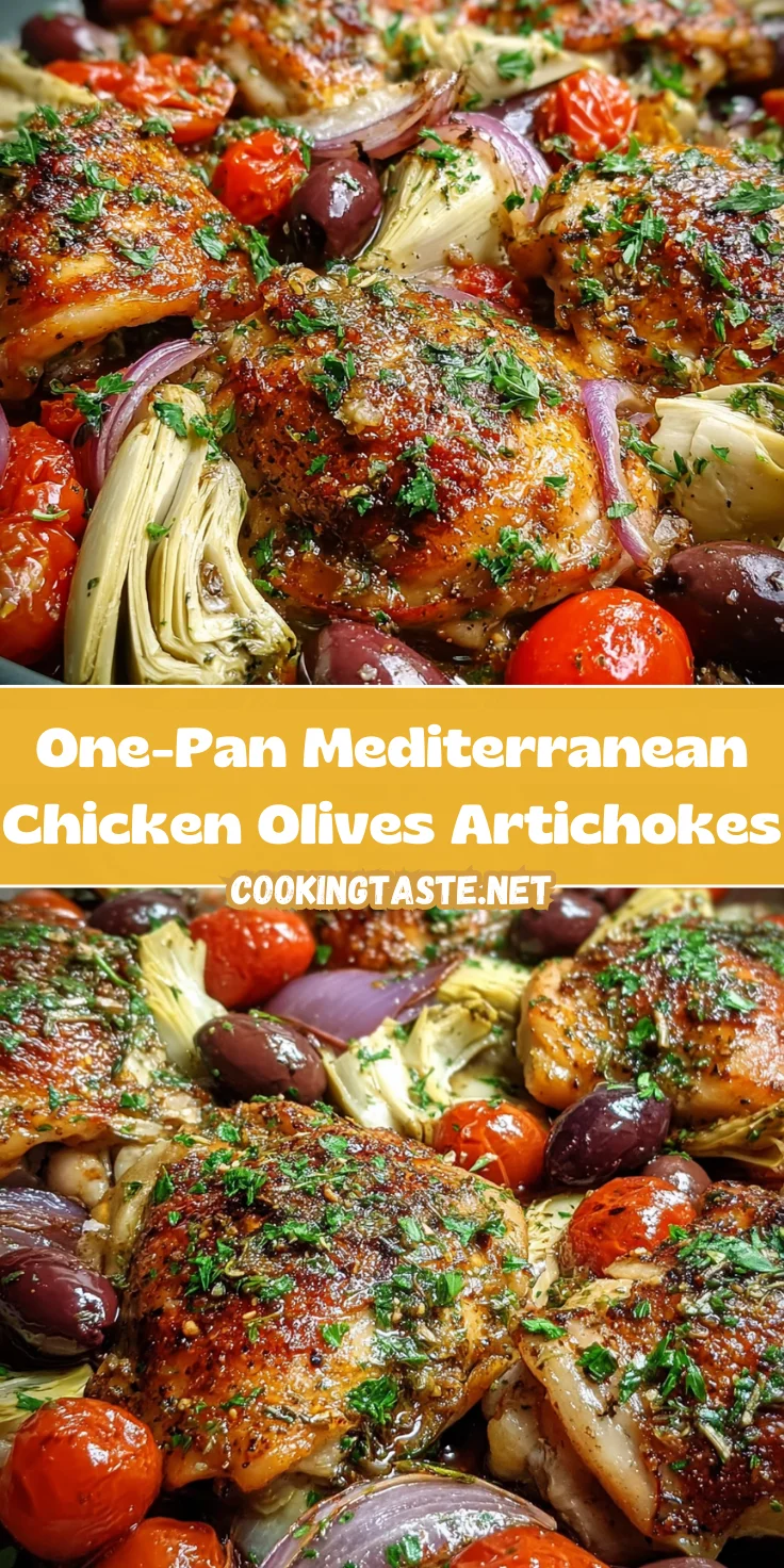 Cooking One-Pan Mediterranean Chicken Olives Artichokes has become a rewarding adventure for me, blending flavor and simplicity. Each bite transports me and my family to sun-kissed shores, where life is relaxed and meals are always a celebration. This dish not only nourishes but also creates cherished memories around the dinner table. I adore how it brings everyone together, inviting laughter and stories over a delightful meal. I hope this recipe becomes a staple in your kitchen, making every busy day feel a little brighter and allowing time for connection with loved ones. Enjoy every savory moment!