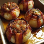 Onion Bombs are a savory dish featuring large onions stuffed with a flavorful beef mixture and wrapped in bacon for the ultimate flavor explosion.