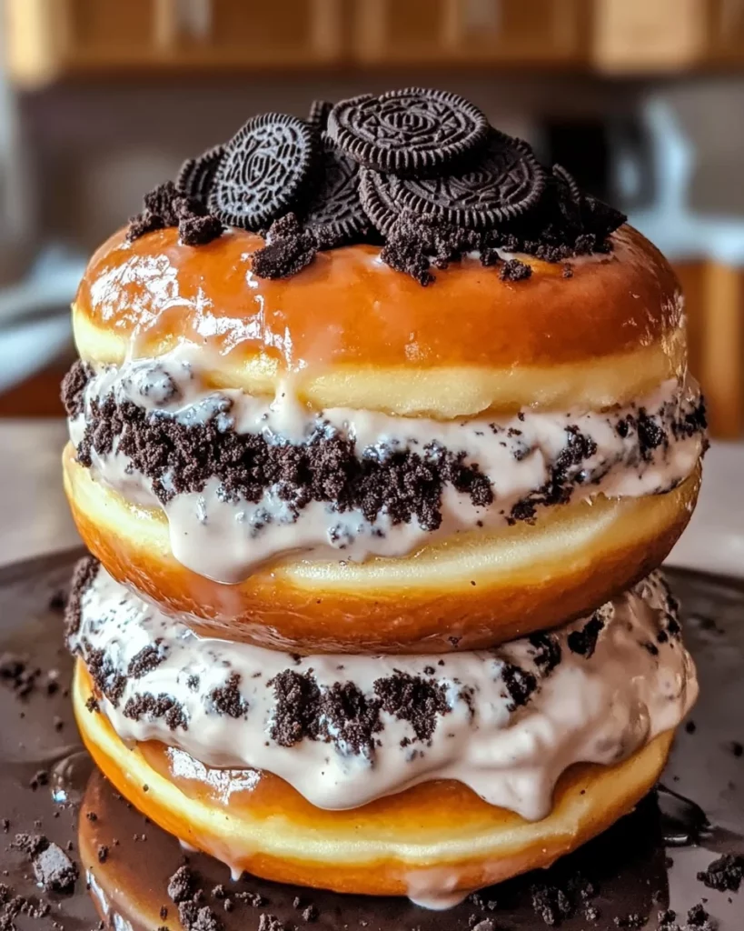 Now, the fun part—let’s assemble our Oreo Cheesecake Stuffed Donut Burger! Take the bottom half of a donut and generously spoon the Oreo cheesecake filling onto it. Don’t be shy; pile it high! You’re creating a culinary masterpiece here! Finally, place the top half of the donut over the filling, making sure it looks just as inviting as it tastes. Feel free to get creative with how you stack those halves; decadent delights deserve an eye-catching presentation!