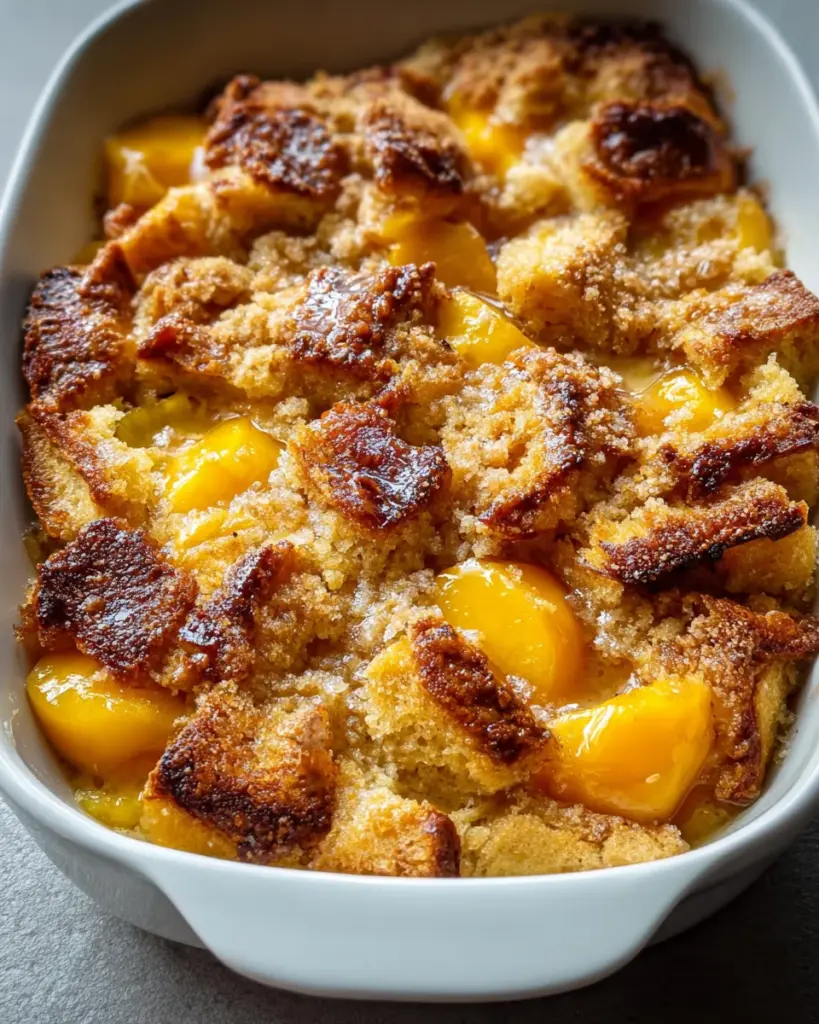 Peach Cobbler French Toast Bake is a delightful and comforting dish combining fluffy French toast, sweet peaches, and a crumbly topping, perfect for a special breakfast or brunch.