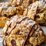 Next, it’s time to add the fun! Drop spoonfuls of creamy peanut butter onto the dough and scatter those delicious semi-sweet chocolate chips. Gently fold and swirl them into the mixture, creating lovely marbled ribbons. The key here is not to fully blend; you want those chocolate and peanut butter pockets!