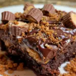 Pour your luscious batter into the prepared baking dish and spread it evenly. Sprinkle the reserved Reese’s on top to create a beautiful finish. Bake in the preheated oven for about 25 minutes. To check for doneness, insert a toothpick into the center; it should come out clean or with just a few crumbs attached. Then you know it’s ready!