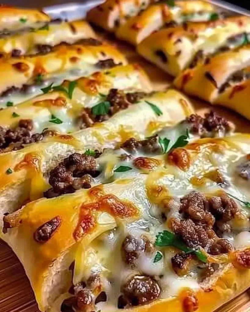 Whether you’re hosting a casual get-together, planning a game-day feast, or simply craving a comfort-food treat, these Philly Cheesesteak Stuffed Cheesy Breadsticks are guaranteed to hit the spot. With their golden, buttery crust, gooey melted cheese, and savory steak and veggie filling, they deliver big flavor in every bite.
