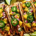 Pineapple Chicken Tacos Fresh are a vibrant and flavorful dish, featuring grilled chicken paired with a refreshing pineapple salsa, all wrapped in warm corn tortillas.