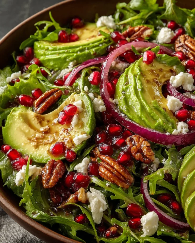 A refreshing salad dressing combining the flavors of pomegranate, avocado, and lemon.