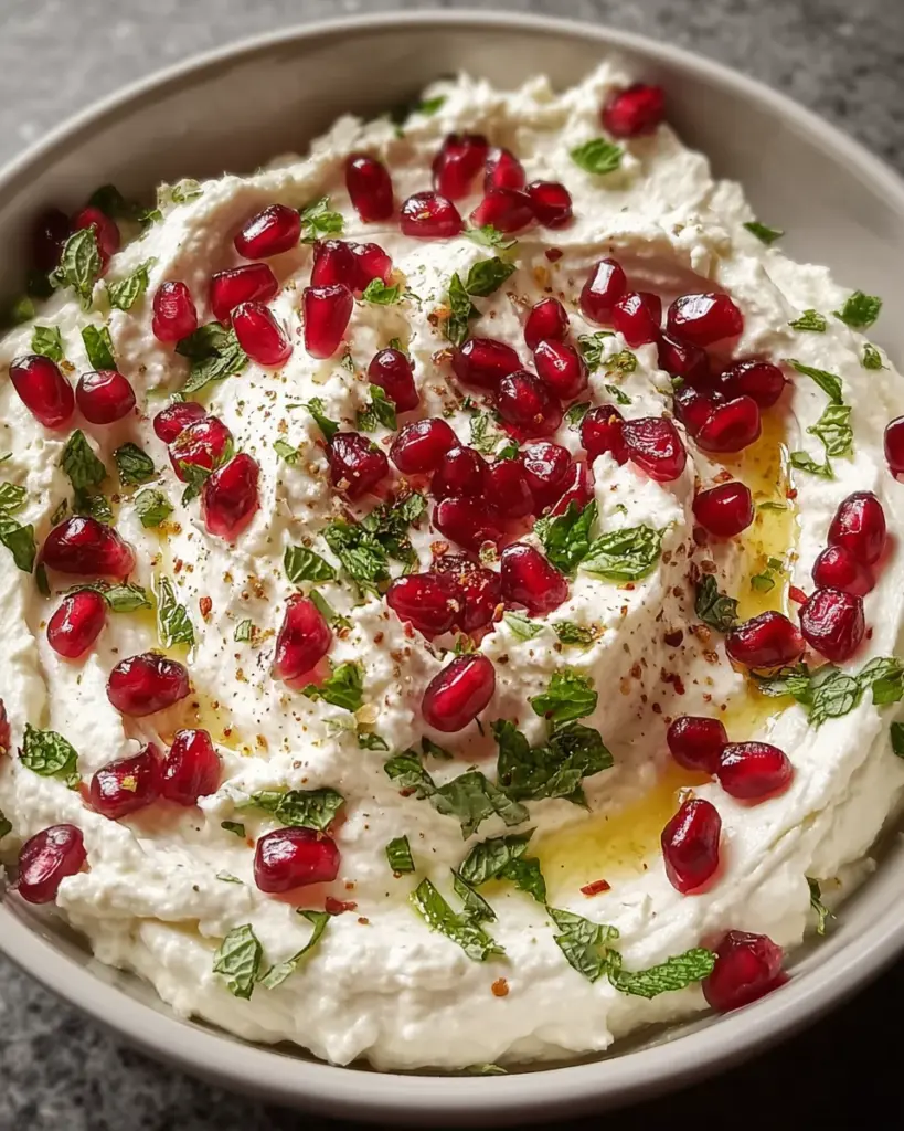A delightful and unique dip combining feta cheese, Greek yogurt, and pomegranate seeds, perfect for any gathering.