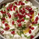 Let’s add the final touches! Drizzle olive oil over the top—it adds not just flavor but a beautiful sheen. Now for the star of the show: sprinkle those vibrant pomegranate seeds across the surface. Lastly, decorate with finely chopped mint leaves and a few slices of scallions if you’re using them. Your Pomegranate Feta Cheese Dip is now ready to be devoured! Serve it immediately with pita chips, baguette slices, or an array of fresh veggie sticks for dipping.