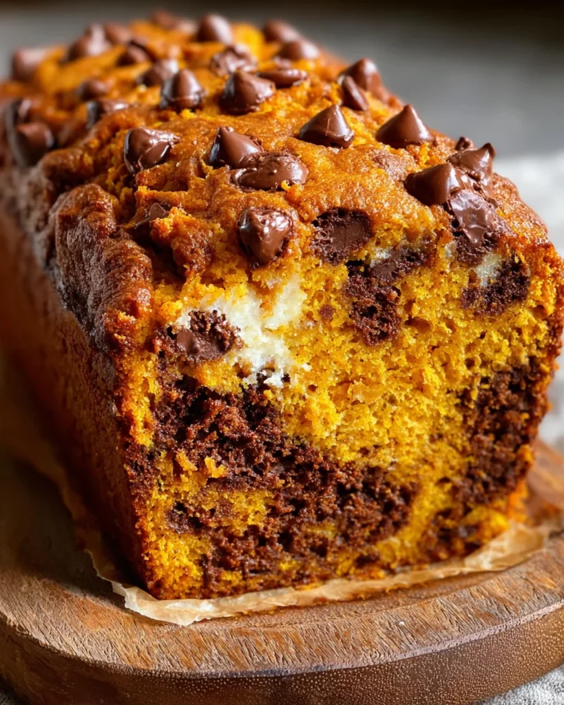 A moist and delicious loaf combining the flavors of pumpkin and chocolate with the creaminess of ricotta cheese.