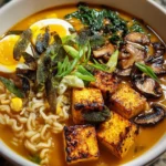 It’s the best part—assembly! Divide the noodles among serving bowls and ladle the hot pumpkin-miso broth over them. Top with crispy tofu, sautéed mushrooms, baby spinach, corn kernels, and the optional halved eggs. Finally, garnish generously with those crispy sage leaves you prepared earlier. Your beautiful Pumpkin Miso Ramen Sage is ready to serve!