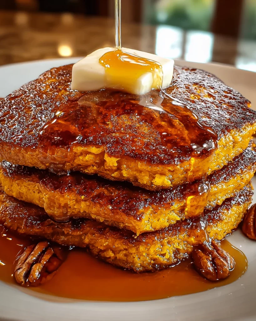Time to cook these beauties! Heat a lightly greased skillet over medium heat. Pour about 1/4 cup of batter for each pancake onto the skillet. Cook for about 2–3 minutes per side until they turn a beautiful golden brown. Flip them carefully, enjoying the delightful aroma wafting through your kitchen. Nothing beats that warm, inviting scent of these Pumpkin Pancakes Fall Edition sizzling away!