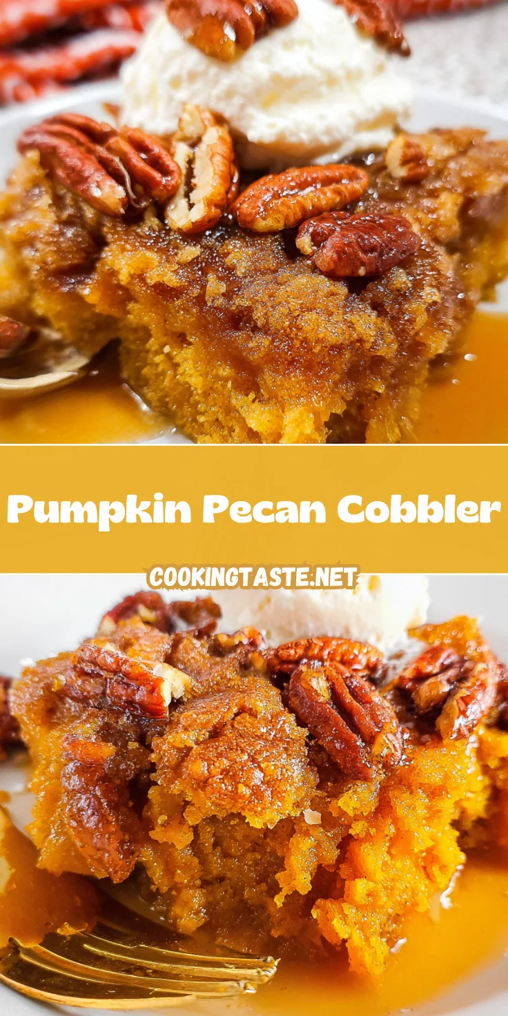 A deliciously moist Pumpkin Pecan Cobbler that combines the flavors of pumpkin and pecans for a perfect fall dessert.