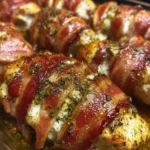 Ranch Bacon Chicken is a savory dish featuring juicy chicken wrapped in crispy bacon, infused with ranch flavors.