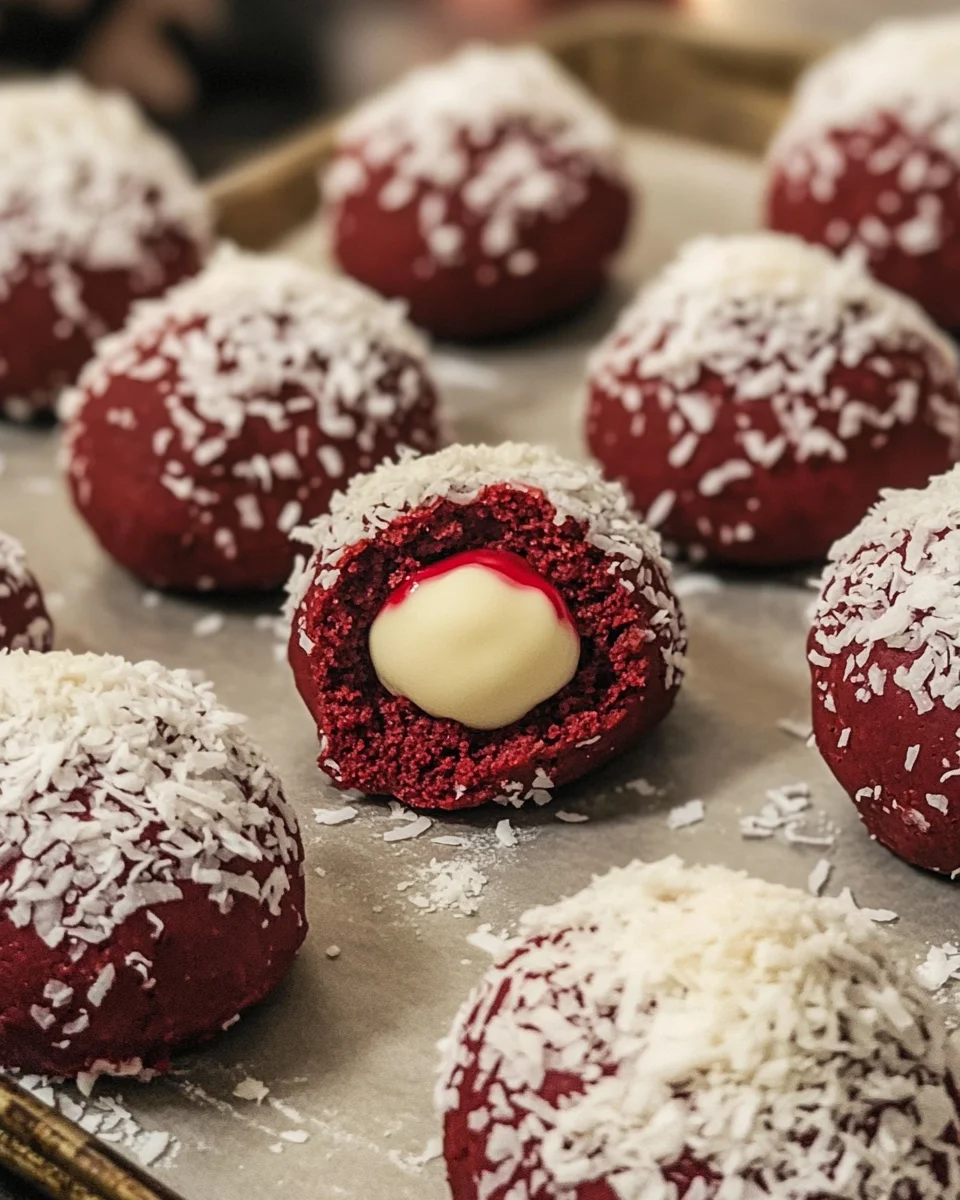 Introduction to Red Velvet Snowball Cookies with White Chocolate Filling