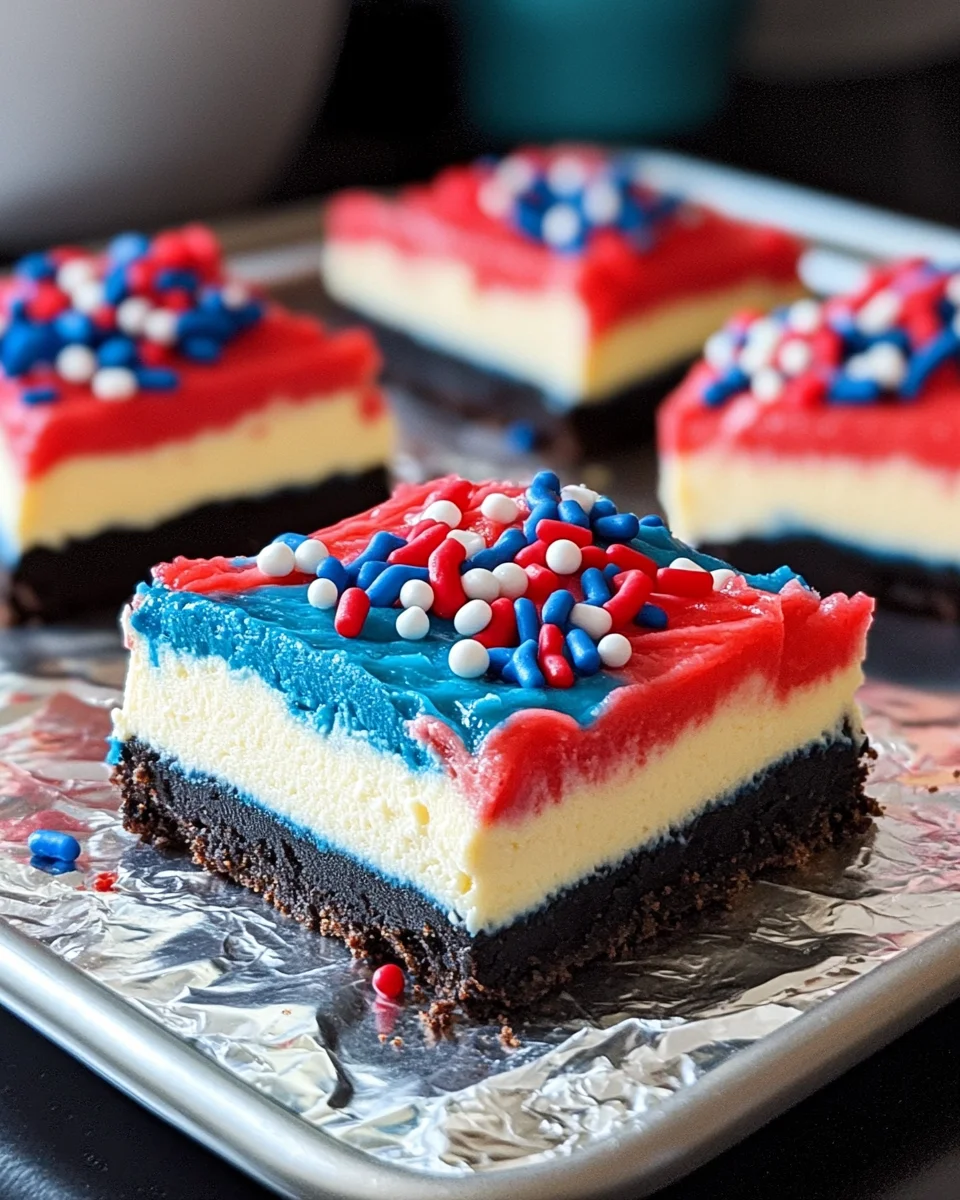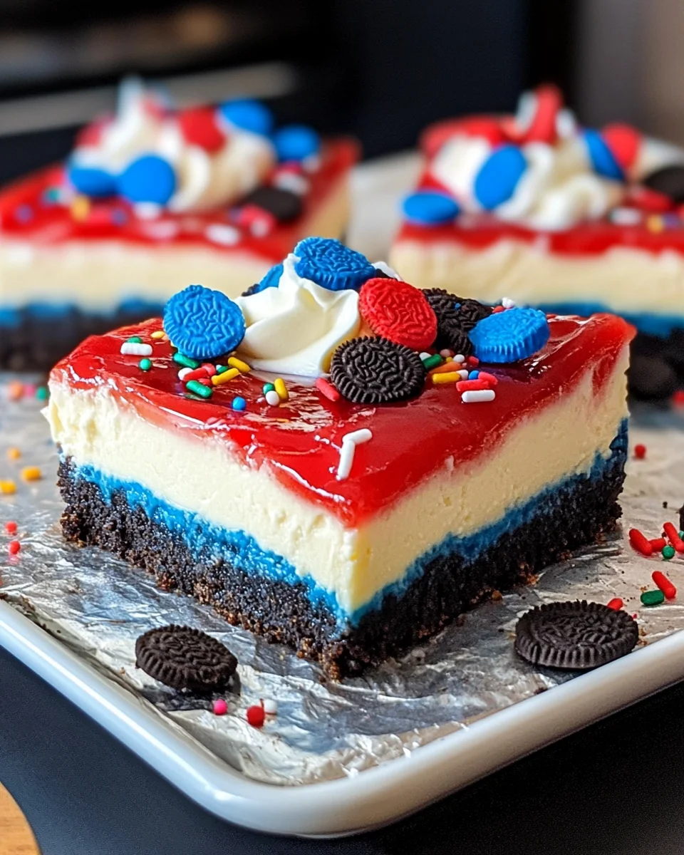 These Red White and Blue Cheesecake Bars are the perfect blend of ease, speed, and incredible taste. They come together quickly, making them a must-have for your busy schedule. Plus, who doesn’t love the rich combination of creamy cheesecake and a satisfying Oreo crust? Whether it’s a holiday or just a regular weeknight, these bars deliver joy and flavor without the fuss. Trust me, your loved ones will be coming back for seconds!