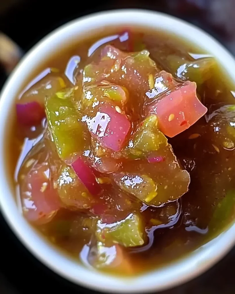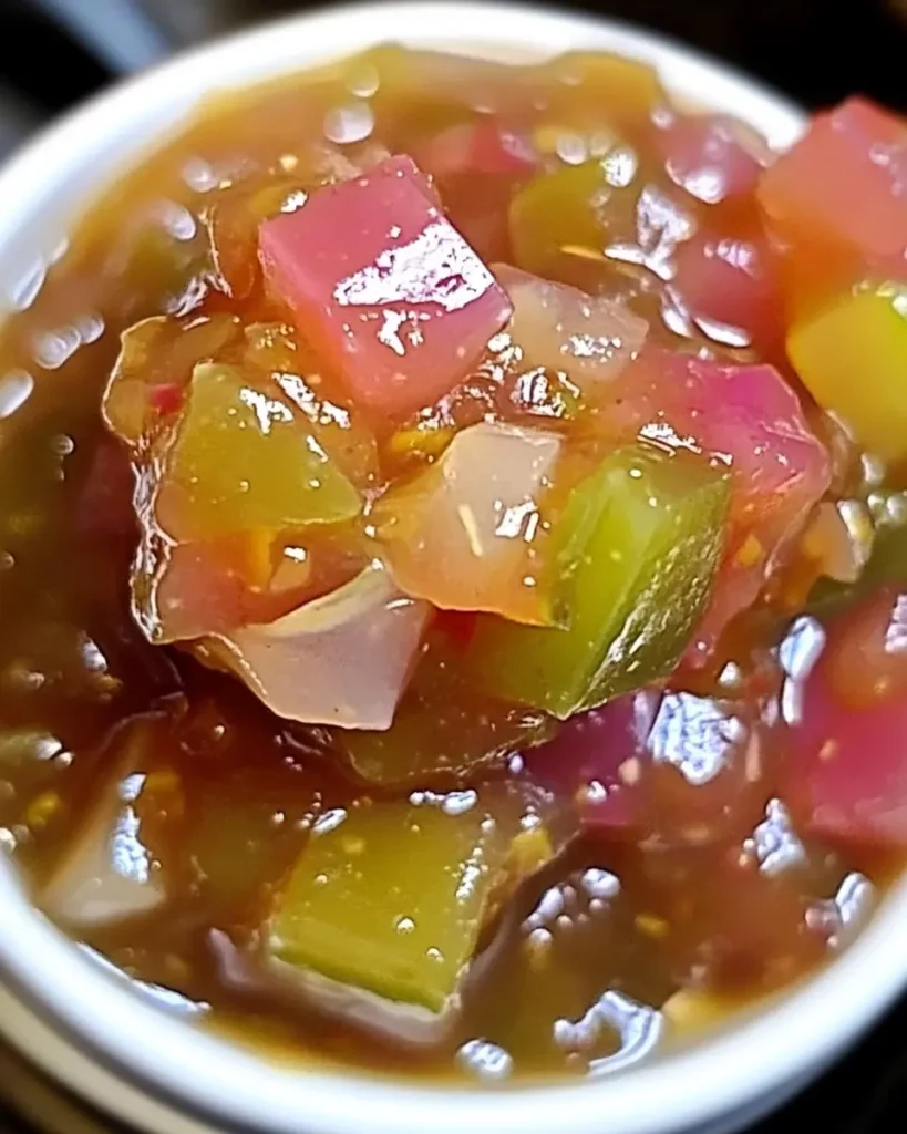 This vibrant Rhubarb Relish is a tangy, sweet, and savory condiment that brings bold flavor to any dish. Packed with fresh rhubarb, peppers, onions, and warm spices, it’s perfect for serving alongside grilled meats, spooned over roasted veggies, or added to a cheese board for a punch of seasonal goodness.