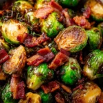 A delightful dish featuring roasted Brussels sprouts tossed with crispy bacon and finished with a sweet balsamic glaze.