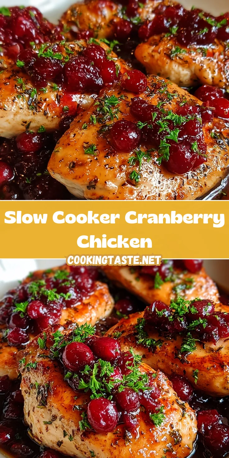 Slow Cooker Cranberry Chicken is a flavorsome and effortless recipe combining tender chicken breasts with a sweet and tangy cranberry sauce.
