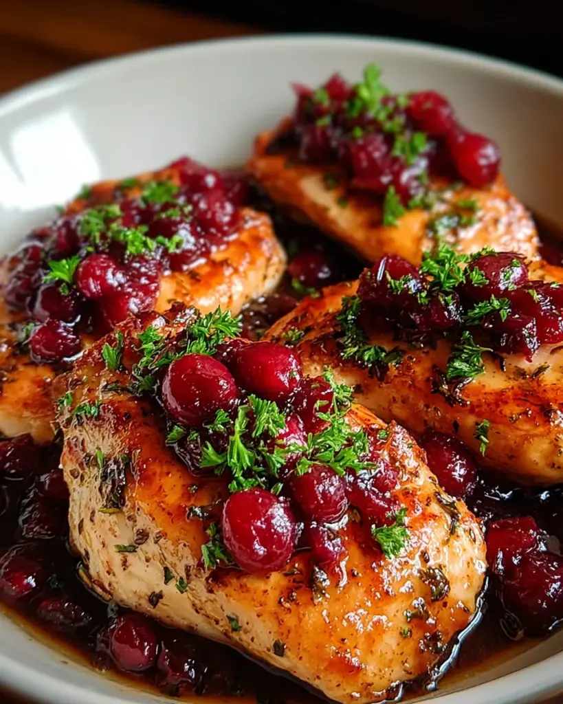 - Serve the cranberry chicken hot, spooning extra sauce over the top, and garnish with freshly chopped parsley if desired.