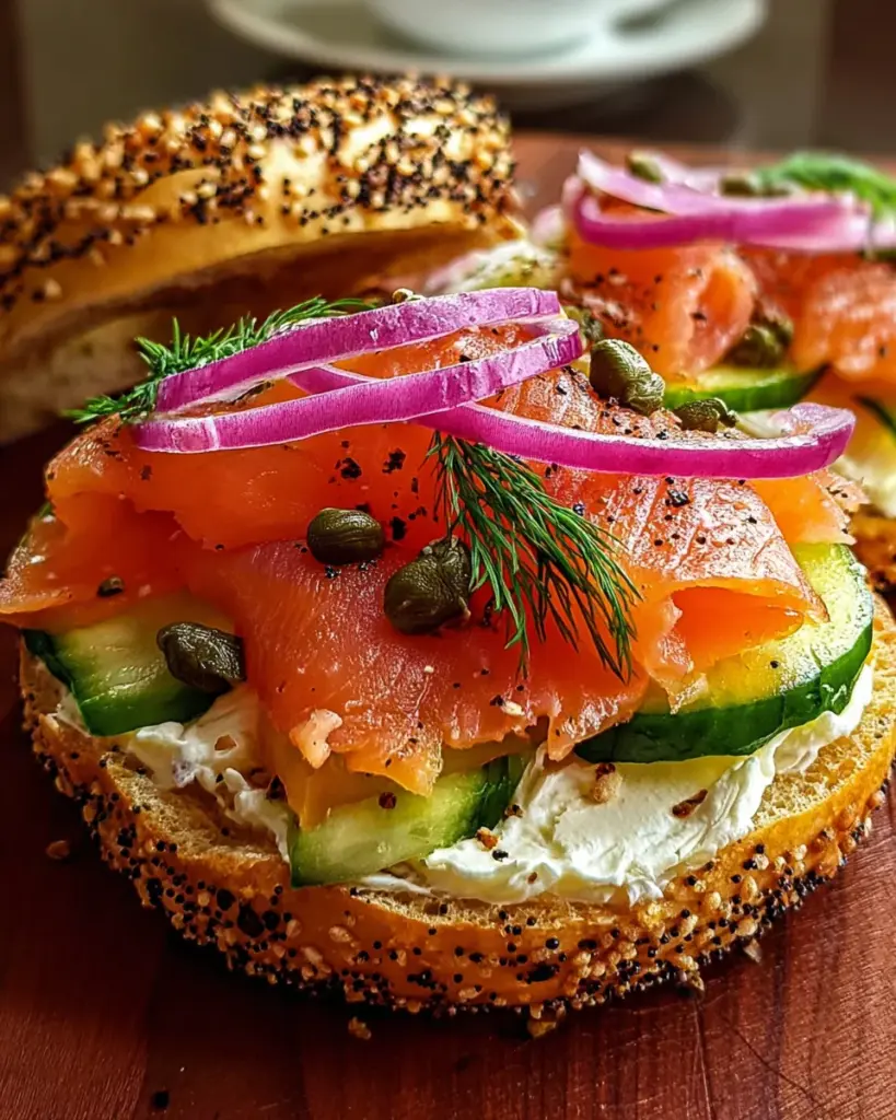 Absolutely! This Smoked Salmon Bagel Sandwich with Cream Cheese and Veggies is low in calories and rich in protein, thanks to the salmon and cream cheese. It’s a satisfying option that fits a balanced diet.