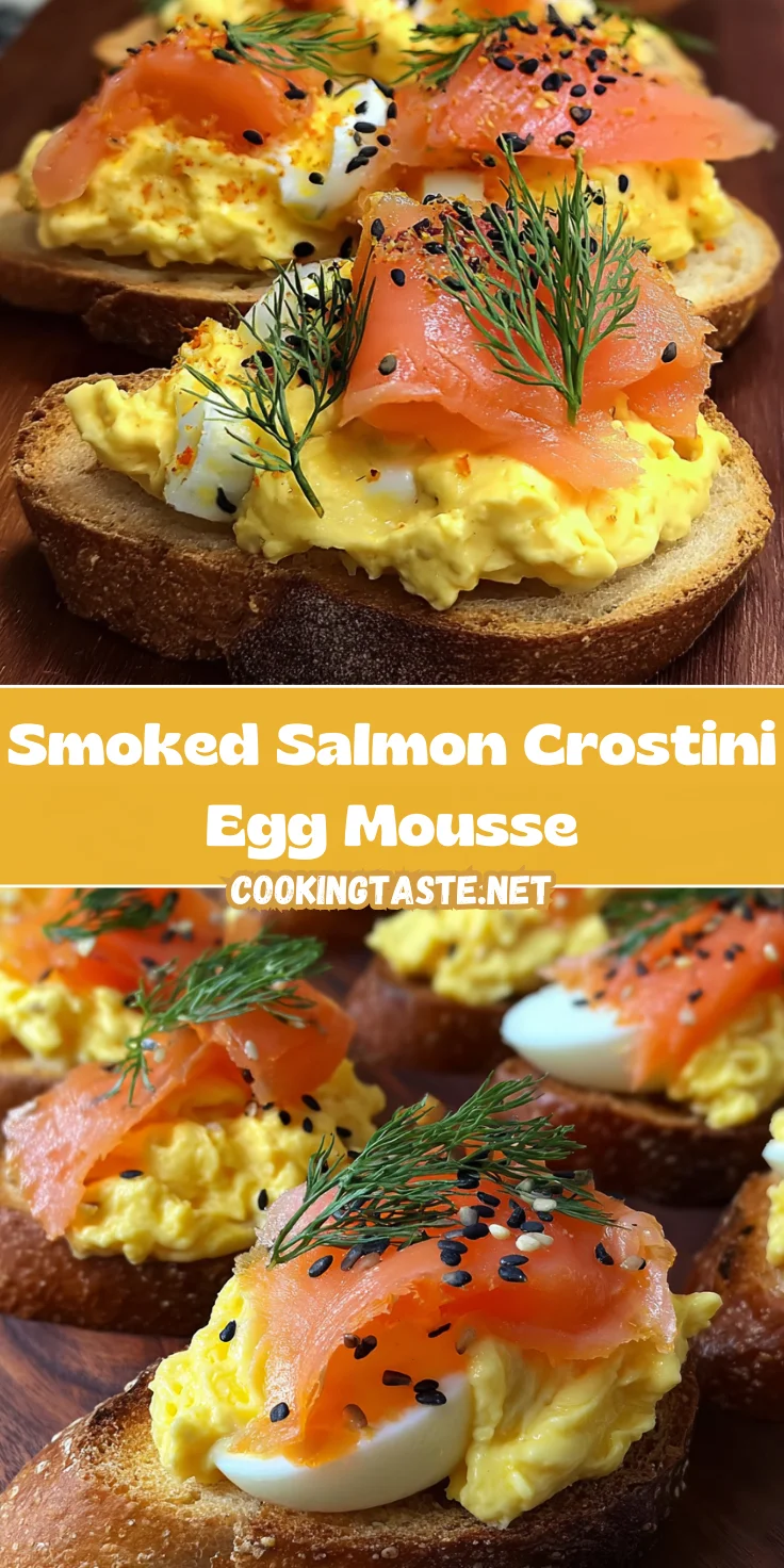 A delightful recipe for Smoked Salmon Crostini topped with a creamy Egg-Cheddar Mousse, perfect for appetizers or special occasions.
