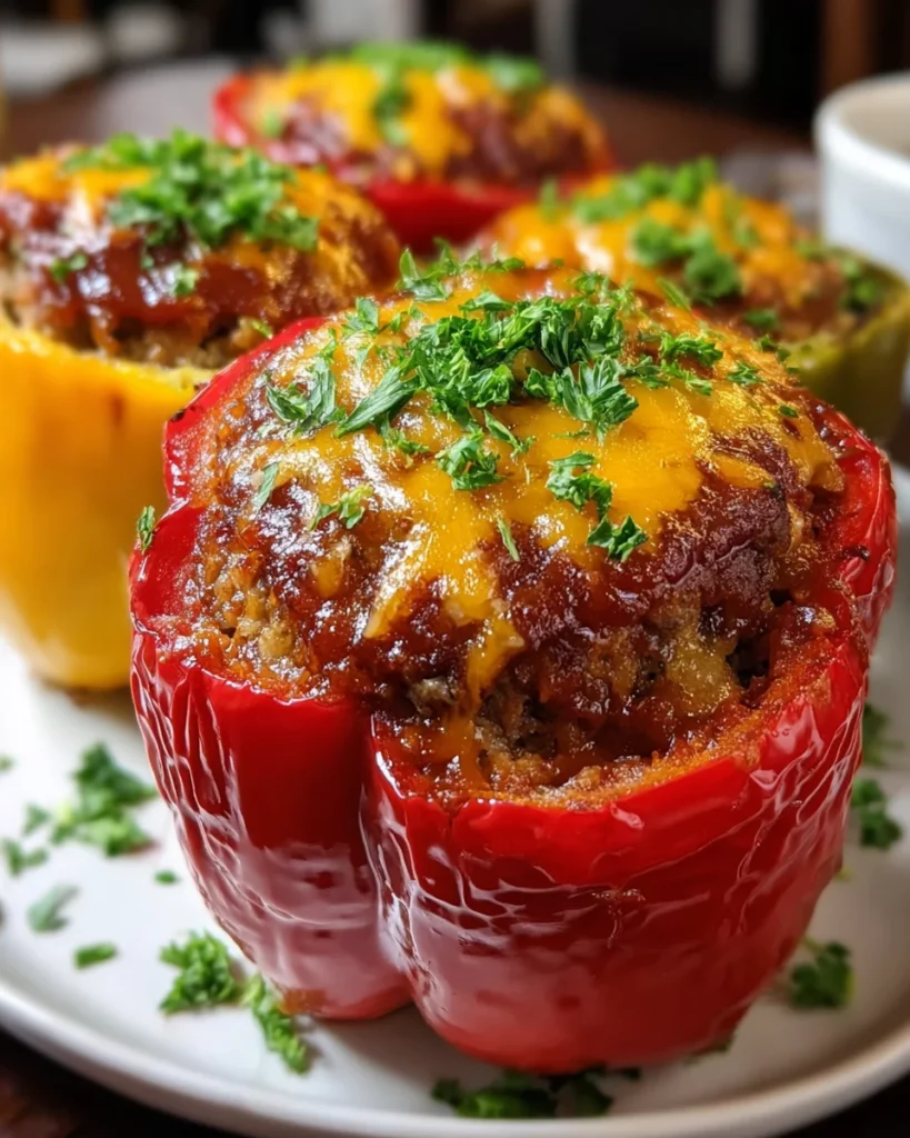 A delicious and unique recipe combining smoky BBQ flavors with stuffed bell peppers, filled with a savory meatloaf mixture.