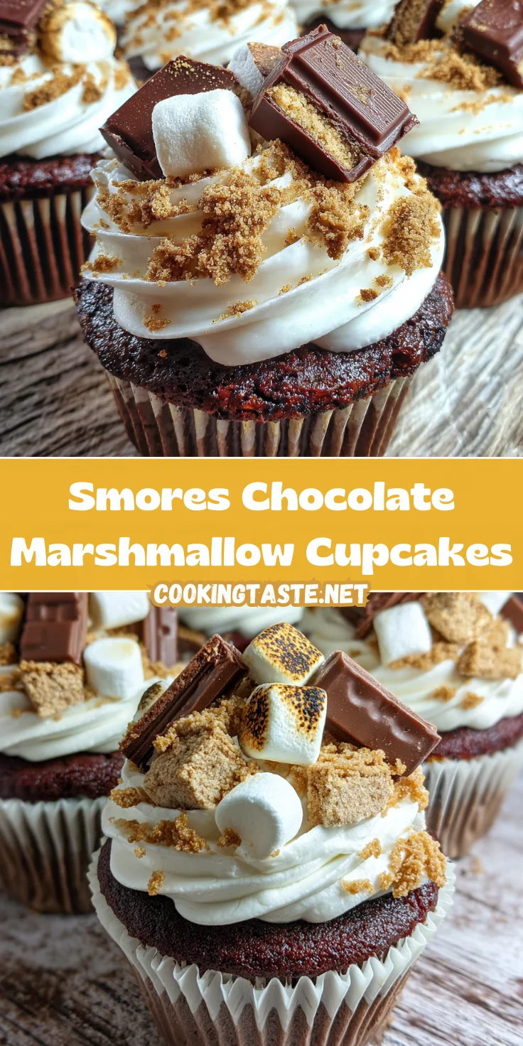 Delicious Smores Chocolate Marshmallow Cupcakes that combine the flavors of chocolate, marshmallow, and graham crackers for a delightful treat.
