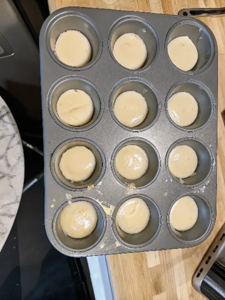 Place the muffin tin into the oven and bake for 10 minutes. Midway through, rotate the pan to ensure even baking. The discard should puff slightly and begin to set with light golden edges.