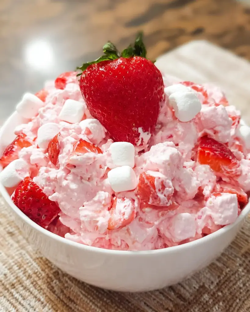 A delicious and easy-to-make Strawberry Fluff Salad, perfect as a light dessert or side dish.